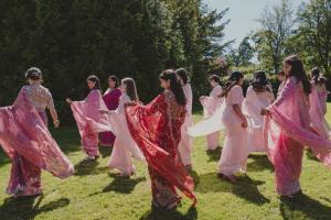 The next morning, we were up bright and early for our Hindu wedding. The sun shone as we circled the fire, exchanged garlands and completed the many beautiful rituals that are part of a Hare Krishna wedding. Our guests wore shades of pink — a vibrant touch that made the day feel even more joyful.