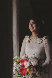 For our civil ceremony, I wore my great-grandmother’s wedding dress — a stunning piece of family history. Trying it on with my Grandma before her dementia worsened was incredibly special, and it felt like having her with me on the day. For the Indian ceremony, I wore a stunning Shyamal & Bhumika saree that I’d been dreaming of for years. I had the blouse custom-designed and I loved how the intricate details came together. In the evening, I swapped into a beautiful Monsoon dress for our ceilidh, accessorised with my family’s tartan sash and vintage Cornelia James gloves I found (last minute!) on eBay.