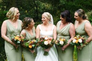 The theme was autumnal, fitting with our October wedding and the colours were red, oranges and greens. My four bridesmaids – who I ‘proposed’ to with little gift boxes – wore sage green gowns from Pretty Lavish.