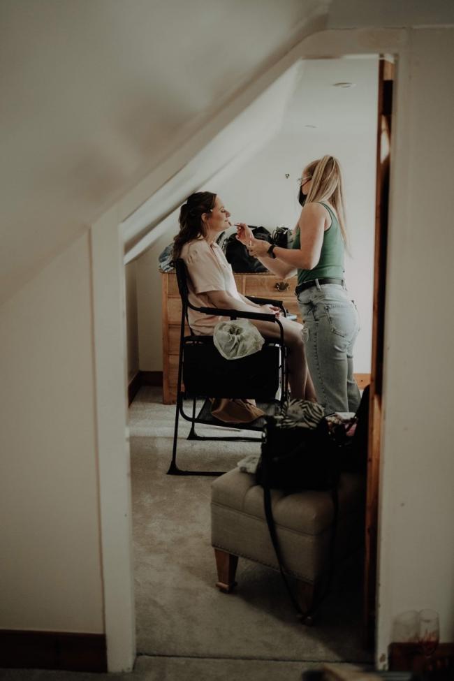 We chose to stay in the cottage the evening before the wedding with some of our closest friends who helped with all the last-minute prep. The wedding morning was amazing. We had the last warm day of the year, and it was a gorgeous sunrise. The girls all got ready upstairs in the cottage while the boys got ready downstairs and did all the setting up.